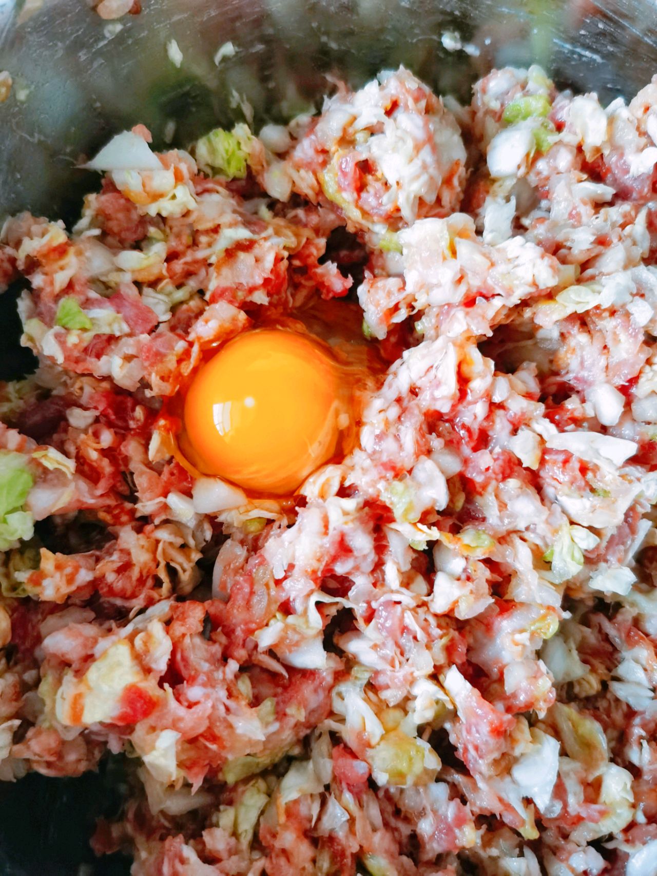步骤1、将白菜剁成碎末,放盐搓洗把白菜中的水分搓出来备用