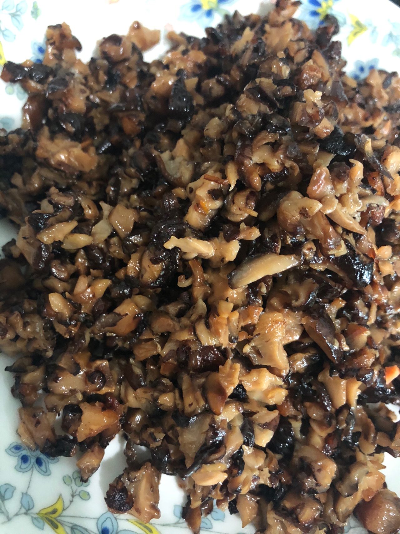 步骤1、香菇切粒,锅中放油炒出香菇的香味后加入鱼露调味