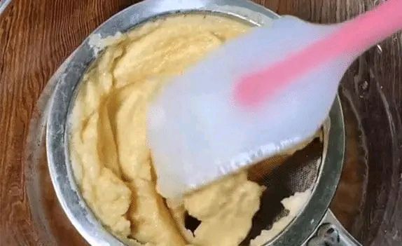 步骤2、第二步:准备一个大碗和过滤网,将榨成泥状的土豆倒在滤网上,过滤出里面的水分,过滤的过程中,用一个铲子或者勺子,给它用力按压一下,尽量将里面的水分都挤压出来,没有过滤网的大家也可以用一块纱布,裹住土豆泥,给它将水分挤出来也可以。