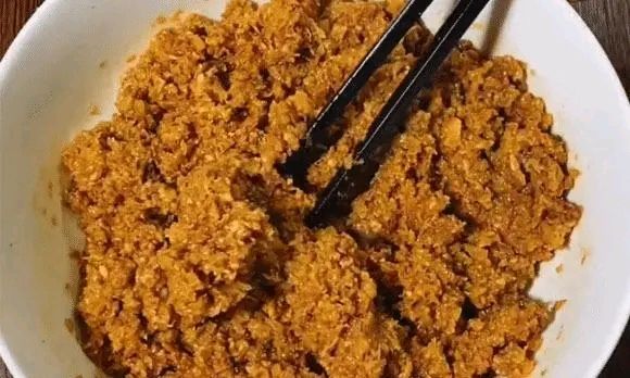 步骤4、第四步:提前准备一个馅料,这里做的是猪肉酸菜馅料,特别的好吃,香而不腻,前面有教大家如何做酸菜,可以请参考做上一些,平时做馅包饺子,包包子都特别香。