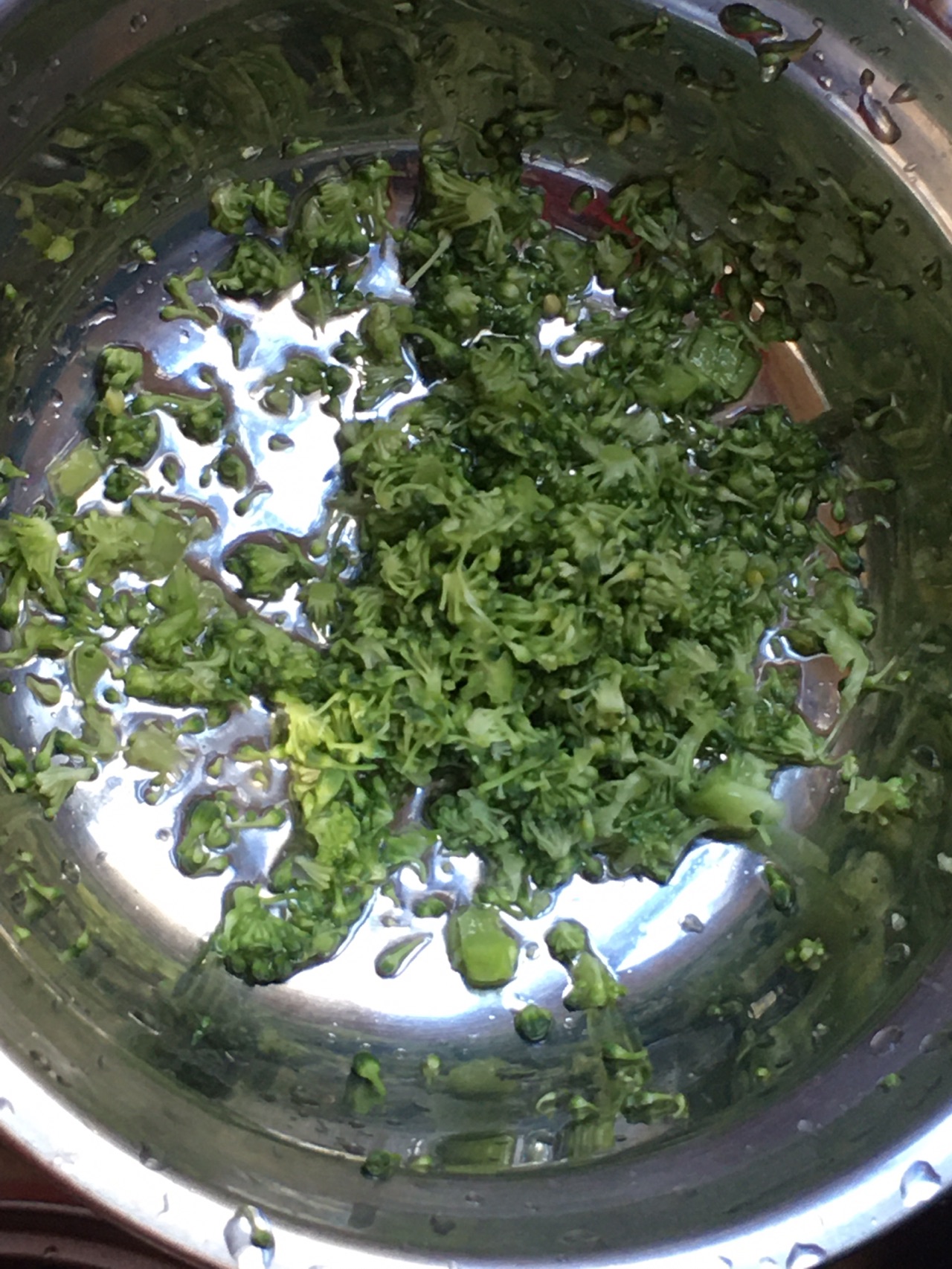步骤3、只要西蓝花,可以加一点点菜梗。