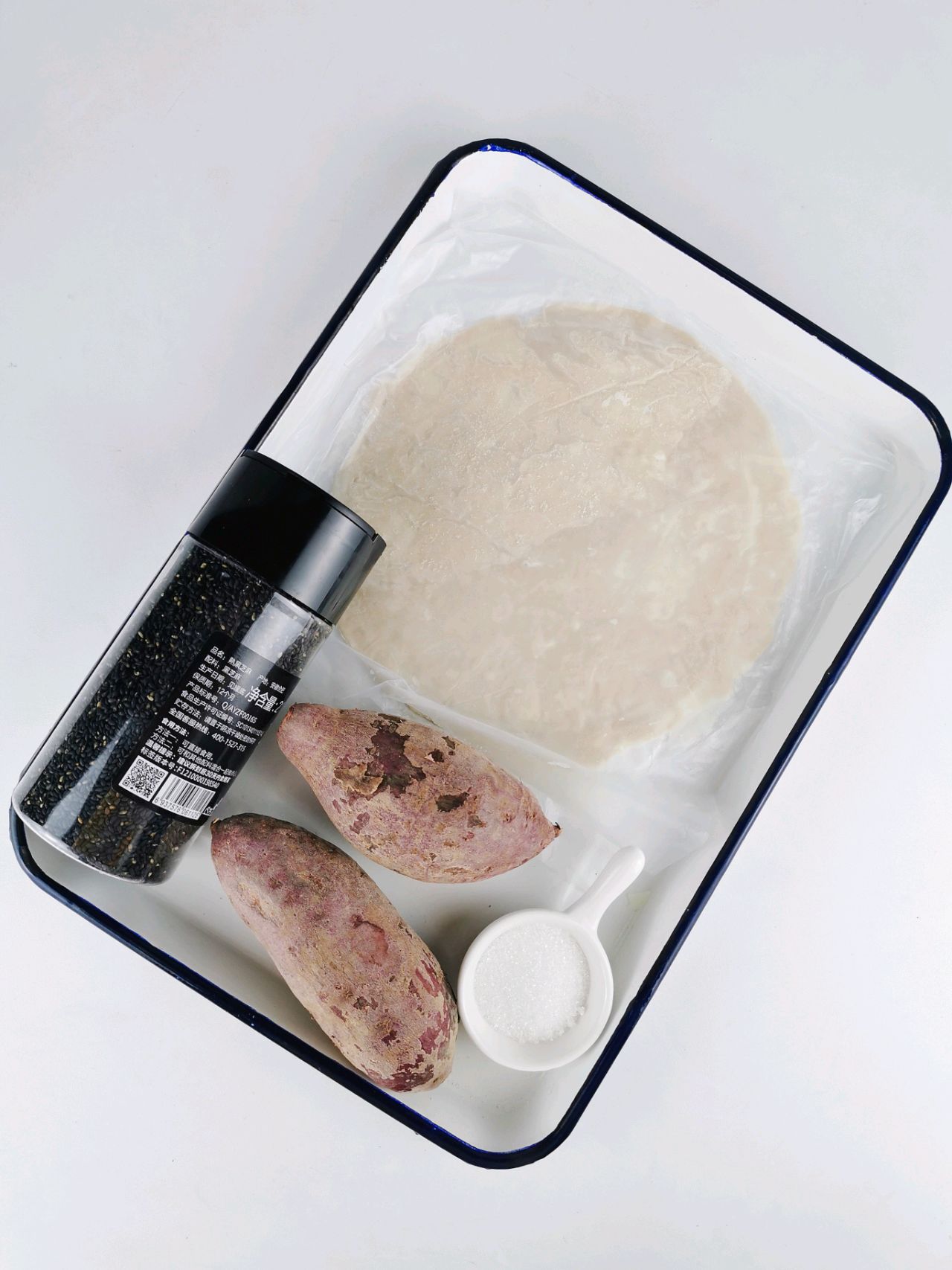 辅料:砂糖10克、手抓饼2张、黑芝麻适量