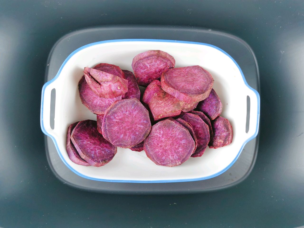 步骤2、紫薯去皮切块,放到米博多功能烹饪机里蒸30分钟