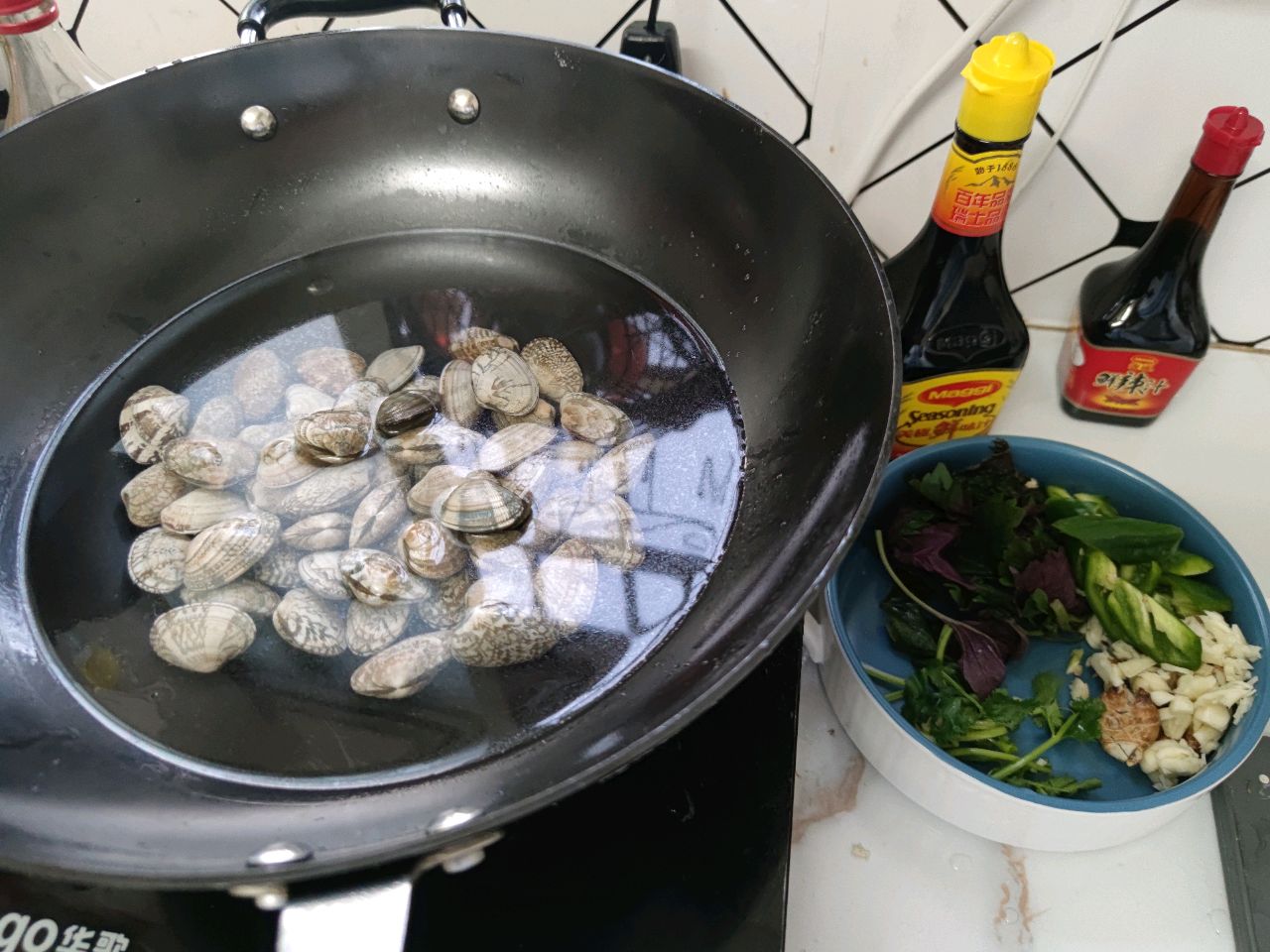 步骤3、花甲冷水下锅,煮至花甲开口