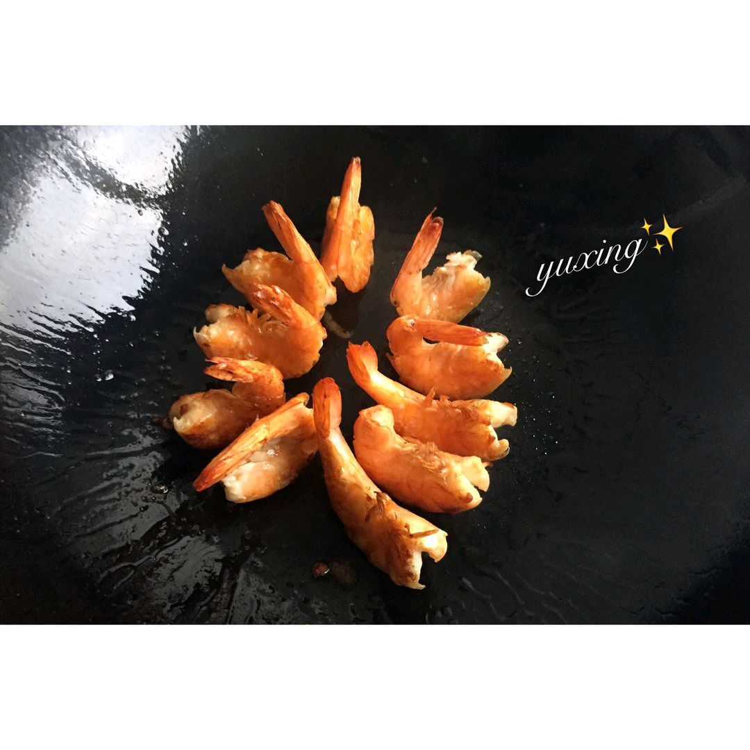 步骤5、坐锅热油,放入大虾,转中小火煎至金黄