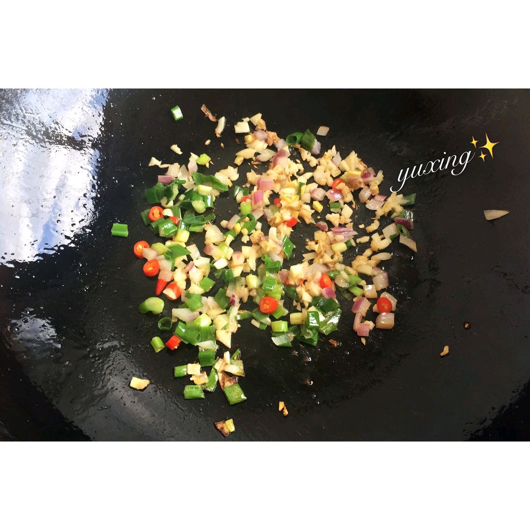 步骤8、然后倒入之前准备好的辅材,煸炒出香味