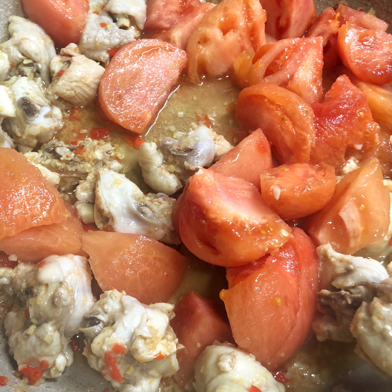 辅料:西红柿2个、大蒜1头、小米辣5个、姜3片、生抽2勺、老抽1勺、料酒2勺、蚝油2勺、小葱1根