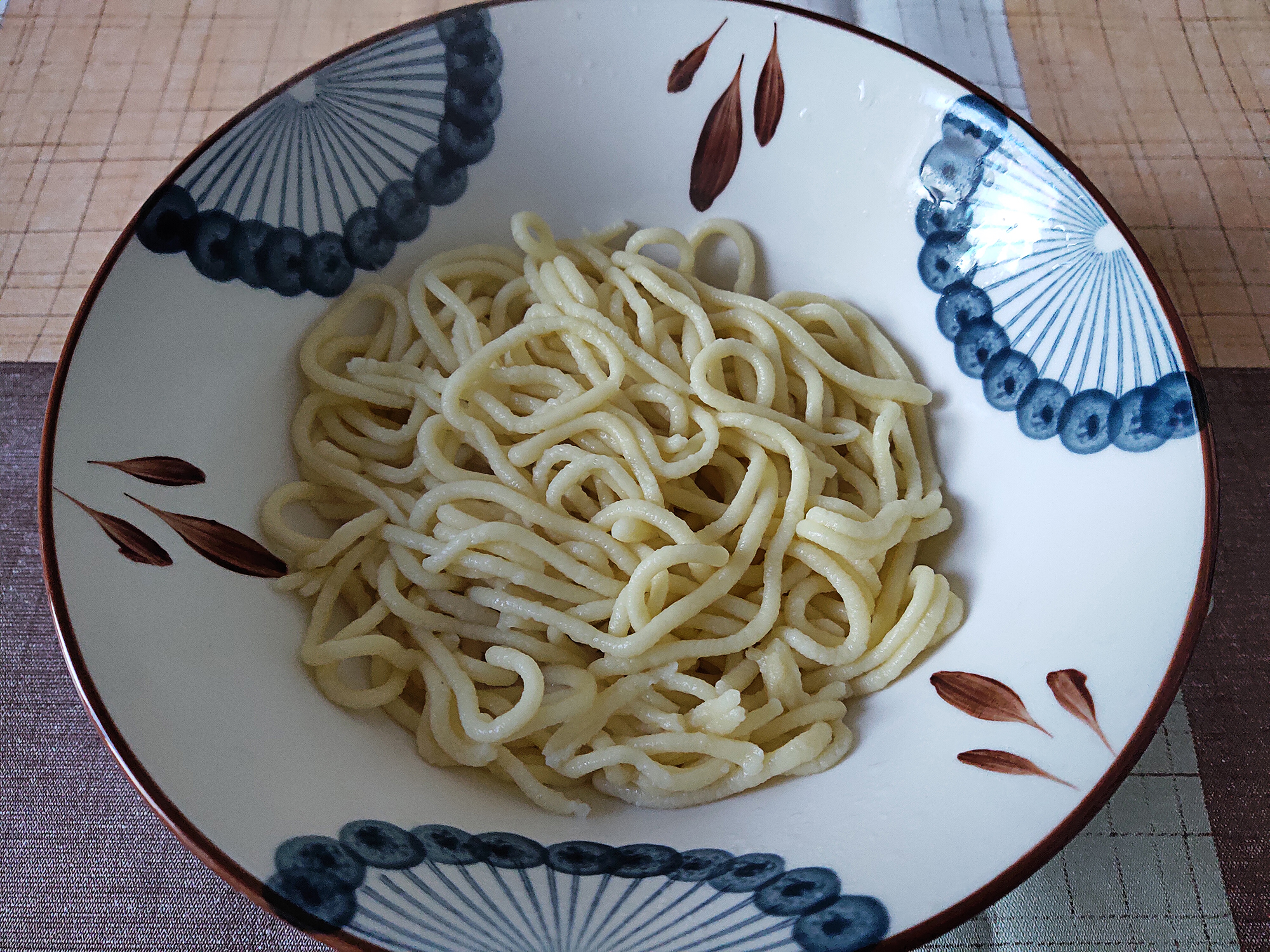 步骤6、组装好压面枪。水烧开后,直接将面条压到水里。