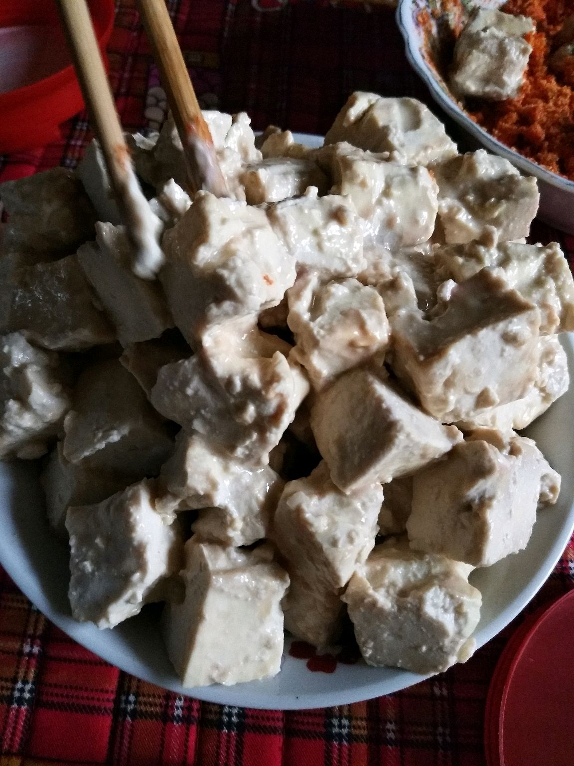 主料:老豆腐一大方块、辣椒粉两种,一香一辣,共100g