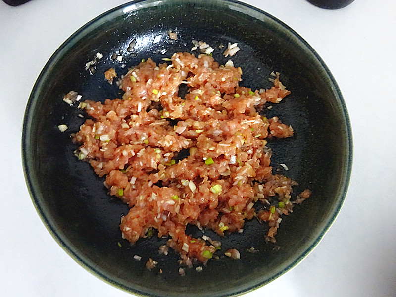 步骤5、把这些材料拌匀就好了。拌馅放了蚝油就可以不放酱油了,如果想要色重一点,可以适当放点老抽调色就行。